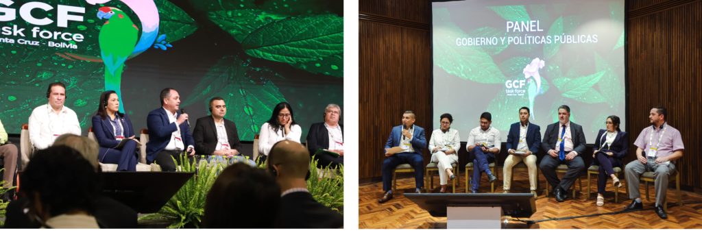 Los Gobiernos Autónomos Departamentales de Santa Cruz, Pando y Tarija presentan sus propuestas ante el GCF Task Force, para una economía baja en carbono y resiliente. El gobernador de Pando Regis Richter Alencar presentó el Plan de Acción Climático Territorial de Pando, apoyado por la Fundación Natura Bolivia, un documento que marca las acciones para hacer frente a la crisis climática en este departamento. Mario Aguilera, el gobernador en ejercicio de Santa Cruz, compartió las estrategias de la Gobernación de Santa Cruz, resaltando la política y estrategia de manejo de fuego. Por otro lado, el gobernador de Tarija, Óscar Montes Barzón remarcó los esfuerzos del departamento hacia una visión resiliente.